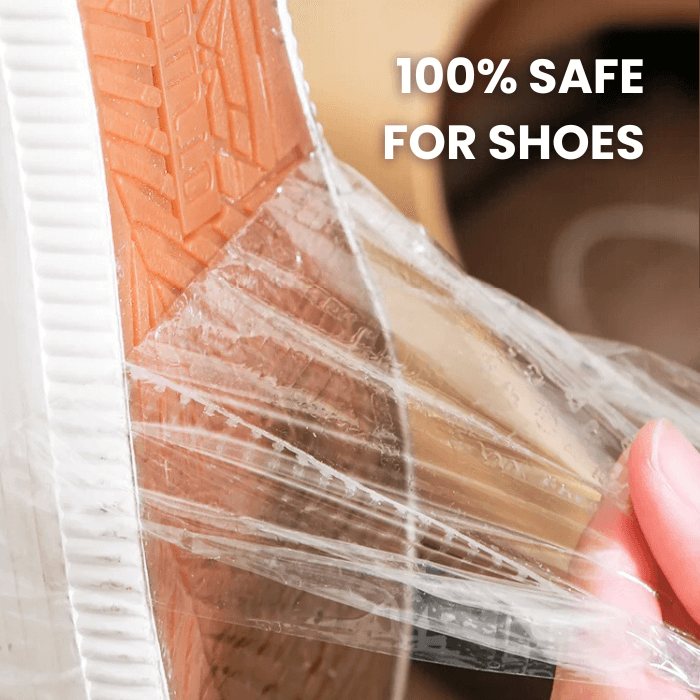 Even though our adhesive wrap tightly seals your shoes, itβs 100% safe for them when peeled off.