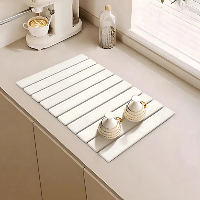 Made of diatomaceous stone, it absorbs moisture efficiently. Simply place your wet cups and plates on it, and they dry quickly while your countertop stays fresh and clean.